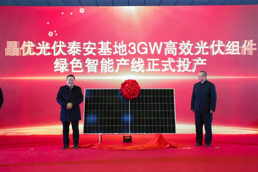 12月27日上午,晶优光伏泰安基地年产3GW高效光伏组件智能制造项目投产仪式举行。泰安市委书记、市人大常委会主任杨洪涛,市委常委、常务副市长常绪扩,市委副秘书长、市委办公室主任刘式堃,市政府副秘书长李勇,高新区党工委书记、管委会主任刘斌等领导出席投产仪式,共同见证首片高效光伏组件下线。