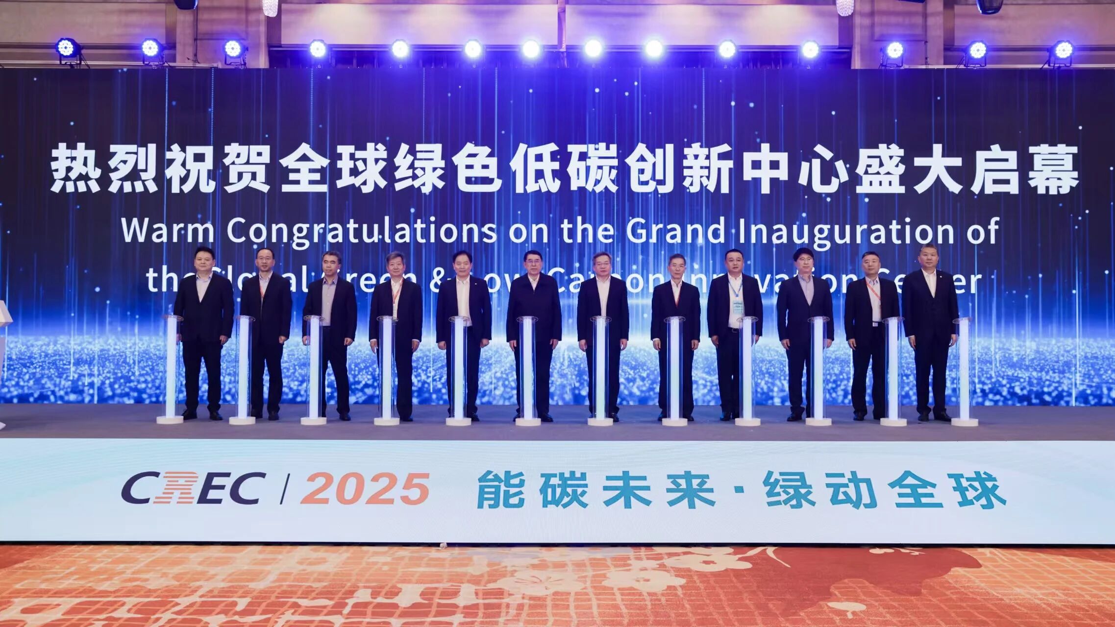 会议现场发布《关于共建全球绿色低碳创新中心的倡议》,倡导政、企、研、检等多方力量协同,构建集技术研发、成果转化、标准制定、产业服务于一体的创新平台。中国能源研究会理事长史玉波,无锡市委常委、市政府常务副市长王凯,协鑫(集团)控股有限公司创始人、董事长、全球绿色能源理事会主席、亚洲光伏产业协会主席、全球储能与电池理事会联席主席朱共山,中国能源研究会副理事长、秘书长孙正运,中国能源研究会可再生能源专业委员会主任委员梁志鹏、无锡市检验检测认证研究院副院长、国家太阳能光伏产品质量检验检测中心(CPVT)副主任张栋兵,无锡帝科电子材料股份有限公司董事长、总经理史卫利,天合光能副总裁、公共事务部负责人曲越川,中国质量认证中心新能源处副处长康巍、奥特维科技股份有限公司副总裁刘汉堂、中信泰富能源有限公司总裁助理兼投资管理部总经理刘纲、协鑫集团有限公司副总裁、无锡新能源商会执行理事长张建军等单位代表共同登台举行共建仪式,标志着全球绿色低碳创新中心建设正式启动。