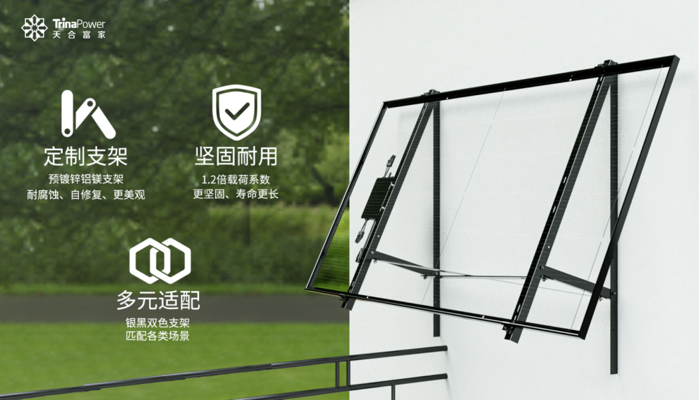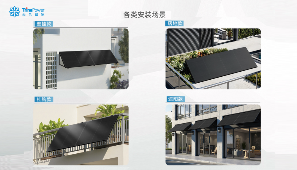 聚焦于众多家庭的高价电费与停电焦虑,天合富家持续开拓创新,于今年9月正式推出“省电王”阳台光伏产品,该产品不仅可以安装在阳台上,还可以安装在别墅、公寓、庭院及临街商铺等场景,款式涉及露台款、壁挂款、遮阳款、挂钩款、落地款,以其最小的一拖二(445W)小组件为例,所需面积不到4平米,真正做到了全场景适配,无需改动房屋结构,安装无阻碍。